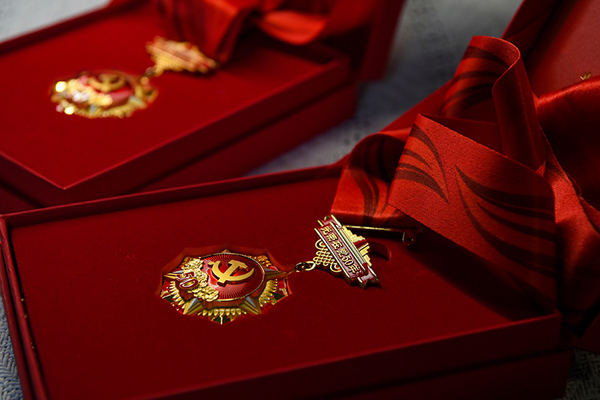 “我是1946年6月入黨,我跟我夫人同時同地入黨,那個時候黨是絕密的!辈荠i打開鮮紅的“光榮在黨50年”獎章,“我一生獲得了很多獎,差不多算起來至少有60多個獎,黨給我的榮譽很多,我都很珍惜!薄拔覀兪菑钠D苦斗爭過來的戰士,現在這個時代這么好,不僅不愁吃不愁穿,國防強大,國力強大,我們這一代人覺得很驕傲,能夠見證我們偉大的黨的光輝歷程,見證中華民族的偉大復興!