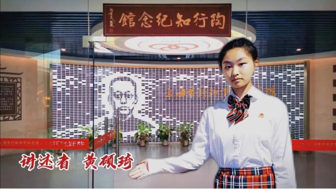我是上海市行知中學的高三學生黃碩琦。今天我要給大家介紹的是行知校史館內珍藏的一張育才會議桌。它四角斑駁的磨損清晰可見,有些甚至向外卷起了毛邊;桌面上有著幾道深深淺淺、或短或長的印痕。當場館的聚光燈打在桌子中央的時候,陳舊得有些發暗的桌面像被鍍上了耀眼的光澤。