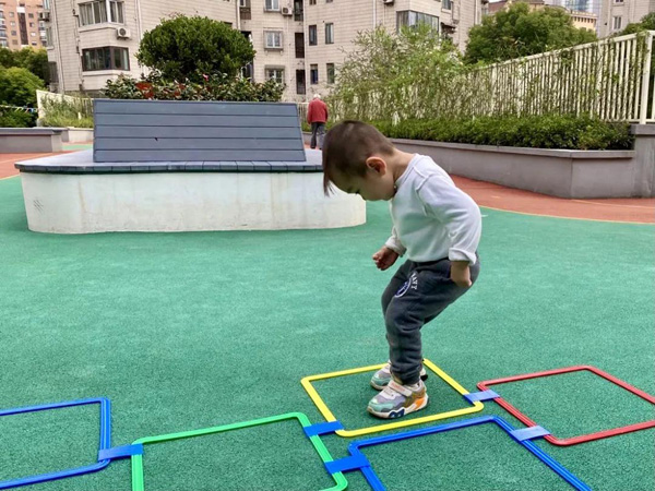 活動室上面的屋頂花園,更是小區里的熱門休閑地;▓@被綠植環繞,彩色的透水彈性地坪既美觀又環保;▓@內還設有跑道,閑暇時老人、孩子都愛來這里轉轉!耙郧皫O子出去玩,基本上都要去小區外面的,現在家樓下就有這么好的活動空間了,真的特別方便!”居民秦阿姨開心地說。