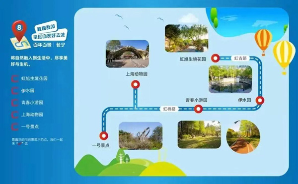 作為長寧區綠化市容局推薦的市容景觀游線之一,雅趣西郊這條線將上海動物園、青春小游園、伊水園、虹旭生境花園等景點串聯起來。在這條線上,精致的公園猶如世外桃源點綴西郊之美;街邊百花齊放的景象營造花境景觀;精心的生態改造呈現別樣精致;環形水域、親水平臺,創造多處休閑空間,讓人與自然和諧共生成為社區改造的典范。