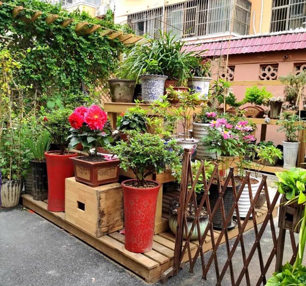 胡老師在紡大居民區住了三十幾年,是上世紀80年代搬過來的,今年已經75歲了!拔移綍r喜歡養養花,一年四季都養,家里陽臺上花太多了沒地方放,后來街道幫我們這些喜歡養花的居民建了個'民治圃',鄰居們把自己養的花搬過來,一到夏天,花都開了,好看得不得了!這也成為了社區里的一個小小百花園!闭f起這個,胡老師毫不掩飾對它的喜愛之情。