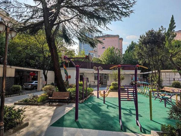 胡老師“強力推薦”的這個地方,其實幾個月前,還只是小區垃圾廂房搬遷后留下的閑置空間。2019年起,紡大開始進行精品小區改造,考慮到這里通行不便,且臨近居民樓和活動室,就將垃圾廂房進行了搬遷,隨后也對這里進行了徹底的消殺。這才有了現在看到的社區“兒童樂園”。