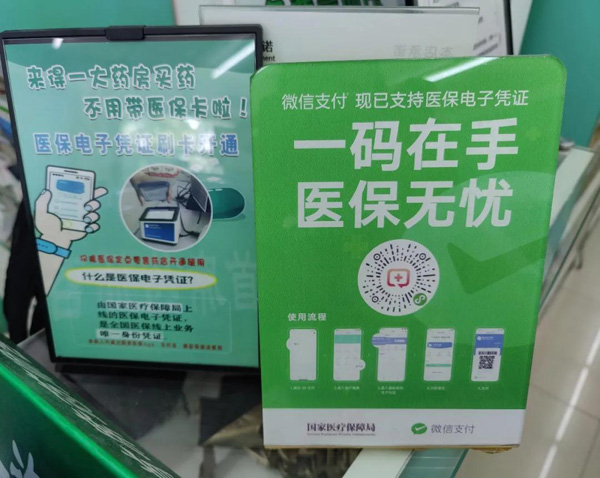 近日,市民程先生來到哈密路2050號的醫保定點藥店準備購買藥品,因忘帶醫?,只好打算自費購買。店員告訴他,只要出示手機里的醫保電子憑證就可以“脫卡”支付藥費。