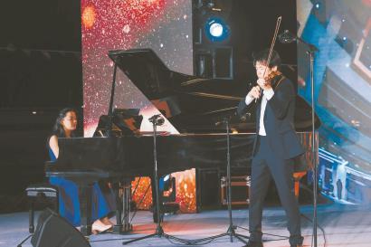 小提琴家黃蒙拉與鋼琴家黃秋寧在寶山城市未來藝術節上表演。 資料圖片