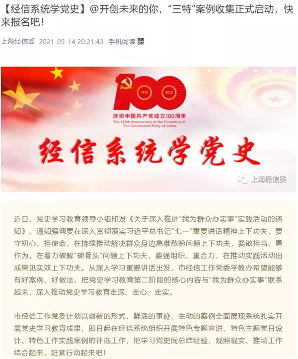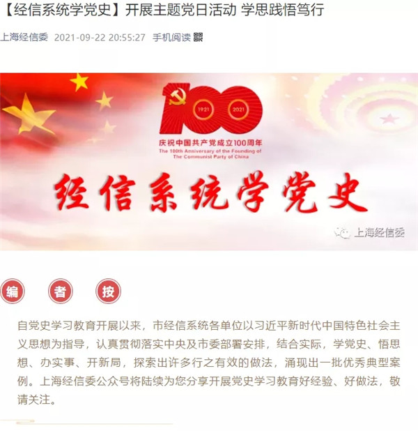 “上海經信委”公眾號開設“經信系統學黨史”專欄