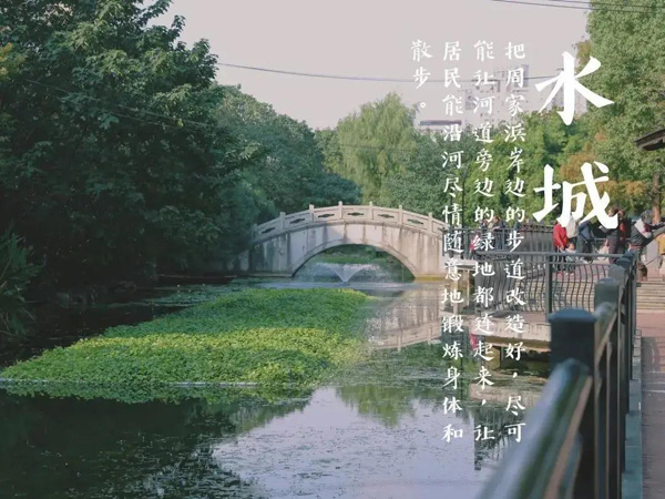 “一軸兩翼四圈”是指水城路、仙霞路把整個街道劃分為四個部分。水城路是“一軸”,沿線有河道、綠地、公園,街道主要設施也比較多,可以發揮聚集效應,優化服務設施和公共空間,讓更多居民共享這些設施。水城路東西“兩翼”各設一個樞紐型綜合服務點,提供文化、養老、醫療等服務。四個部分為“四圈”,都安排相應的公共服務設施。迤邐的慢行步道將遍布城市主干道以及次級道路甚至小區道路形成網絡,把分布在街道、四圈、街坊乃至居委會內的公共服務設施點位和休閑空間串聯起來。