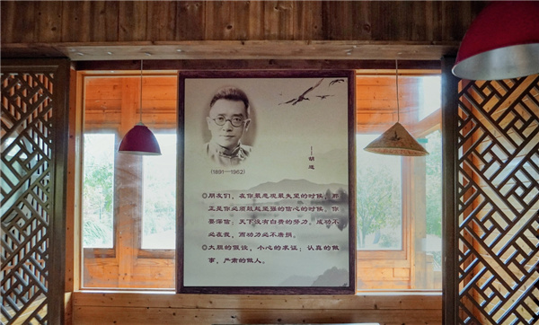 在下屬汪幫華的眼中,胡家迅是一個“一米八幾”、“脾氣躁”但是“心很好,很活潑”的老板。他如同傳統徽商一樣,“賈而好儒”,將儒家文化融于企業經營之中。在徽杭古道入口處的木屋旅館中,隨處可見對徽文化和儒家文化的宣傳展板,有汪華、胡雪巖、胡適等從徽州走出的名人大家的介紹,也有程朱理學、徽墨徽劇等的圖文講解;木屋周邊則聯合了安徽大學、安徽師范大學等高校學府設立了一系列徽文化研究室、書院等文化研究中心,木屋的會議室,成為了徽文化的講堂。2019年4月,安徽財經大學新徽商研究中心、安徽經濟報社、安徽省經理人聯合會三家單位聯合成立的新徽商商學院也在這里正式揭牌成立。