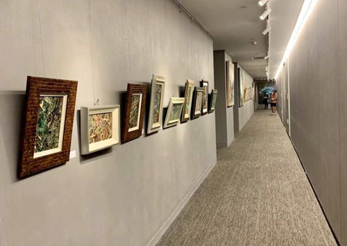 由上海品霖文化傳播有限公司主辦的《遠古童話——吳訓木個展》10月8日在上海中心38層藝術長廊開幕。這是獨立藝術家吳訓木先生繼今夏在第四屆意大利熱那亞藝術雙年展上榮獲繪畫組二等獎之后,又一次重要展事。本次個展展出了吳訓木的布面油畫、石板油畫、水墨畫和攝影作品等。其中,吳訓木2.6米高、9.6米長的巨幅油畫作品,是上海中心38層展出的最大一幅抽象油畫。