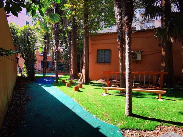 然而規劃方案卻是“一波三折”。據尚善陽光公益事業發展中心負責人虞振亞介紹,最初的設計方案需要移除區域內的樹植,打造更加開放、寬敞的活動空間,但是,這并不符合綠化部門樹木移栽的相關規定。于是,設計方因地制宜,利用茂密的樹木營造出活力森林的氛圍,讓社區更有色彩、更有活力、更有設計感,從而讓小朋友們體會在叢林間玩耍的自然之趣。