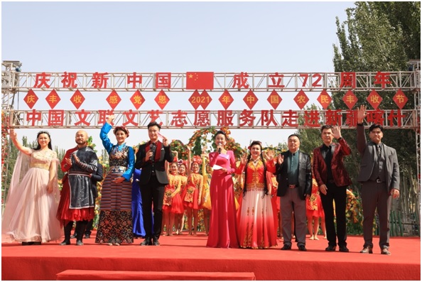 9月27日,在第四個中國農民豐收節到來之際,中國文聯攜手新疆維吾爾自治區文聯、新疆生產建設兵團文聯來到新疆喀什市伯什克然木鄉開展一系列“文化潤疆”活動,共同慶祝中國農民豐收節。