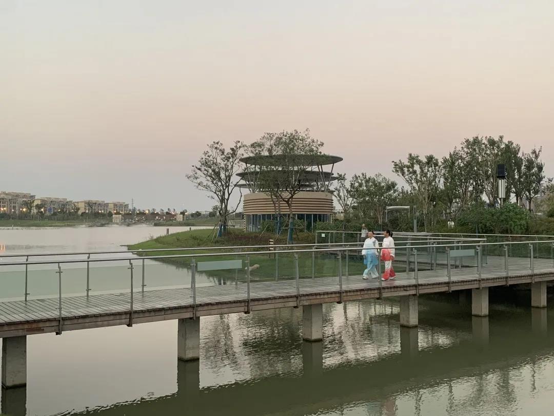 傍晚時分,夕陽籠罩著匯龍湖公園,陣陣微風吹來,令人心廣神怡。這里已經成為附近居民在茶余飯后,前來遛彎散心的好去處。