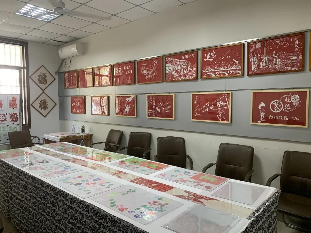 而像楊紅兵這樣的社區文藝骨干,也逐漸被吸納到我區文藝指導員隊伍中來。2019年,楊紅兵進入了區文化資源配送團隊,將她的剪紙作品和技藝帶到了全區各個街鎮村居。今年,在區、鎮兩級的支持下,楊紅兵還成立了她的工作室——山新彬斌藝術剪紙工作室。