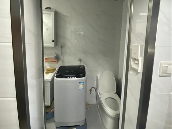 現在打開王阿姨家門,入戶便是狹長形的廚房間,廚房右側的衛生間“麻雀雖小五臟俱全”,淋浴房、馬桶、洗臉臺等均被合理規劃進了有限空間。阿姨邊忙做家務邊介紹:“改變了原先樓梯位置,家里多出一小塊區域,現在每戶家庭都能擁有私人馬桶了,真是方便!”