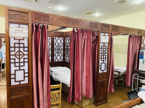 兒童康復區隔壁就是中醫科,孩子們訓練結束之后,可以去中醫科針灸。中醫科用中式仿古木雕花格打造隔間,藥香彌漫。中醫科醫生朱嘉琳介紹,除針對骨骼肌肉疼痛的中醫康復之外,這里的內科疾病康復獨樹一幟,比如治療失眠等疾病。她說:“目前的病人大多數是老人,希望更多年輕人也能來康復或治未病,給身體打下良好基礎!奔议T口的康復“樣板間”,讓居民可以就近獲得便捷、優質、整合的康復服務,促進患者功能恢復或改善,協助患者恢復日常生活自理能力,回歸家庭和社會。