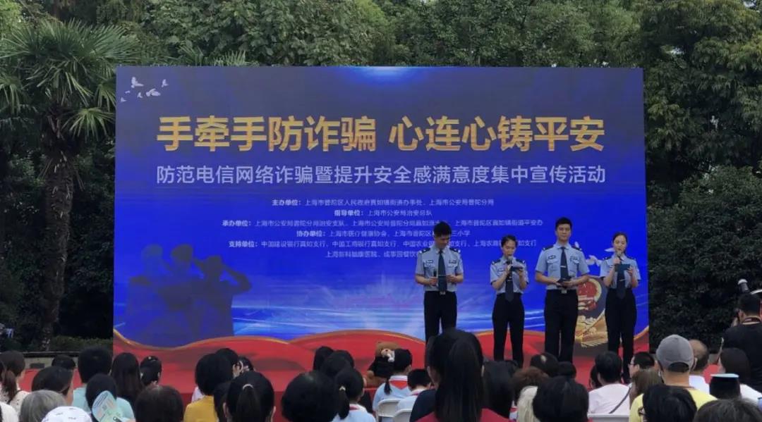 近日,“手牽手防詐騙,心連心鑄平安”防范電信網絡詐騙暨提升安全感滿意度集中宣傳活動在普陀區真如鎮街道舉行。區委政法委,真如鎮街道,上海市公安局普陀分局相關負責人及真如鎮街道社區居民共百余人參加了活動。