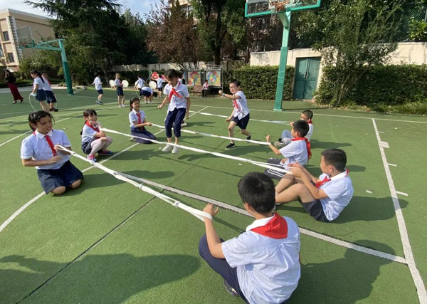 “今年上半年,教育部明確要著力保障學生每天校內、校外各1小時體育活動時間;中小學每天統一安排30分鐘的大課間體育活動,要讓每位學生掌握1—2項運動技能!惫疟甭沸W校長金玨說,“由于學校校內面積有限,我們充分利用每一片角落,將場地根據魔術貼腰帶游戲和體質測試項目劃分區域,每周班級根據項目輪轉表到指定場地進行課間活動。根據孩子們和體育老師的反饋,金老師的魔術貼腰帶游戲受到了學生們的普遍喜愛!