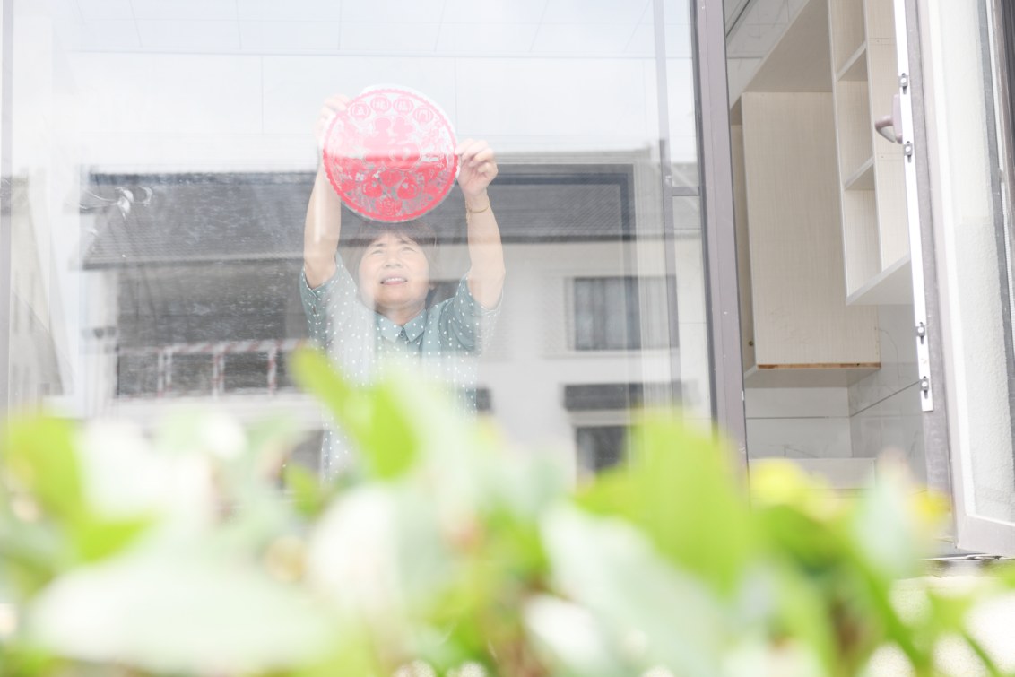 朱涇鎮待涇村村民在新建成的集中居住房內貼福字 陶磊 攝