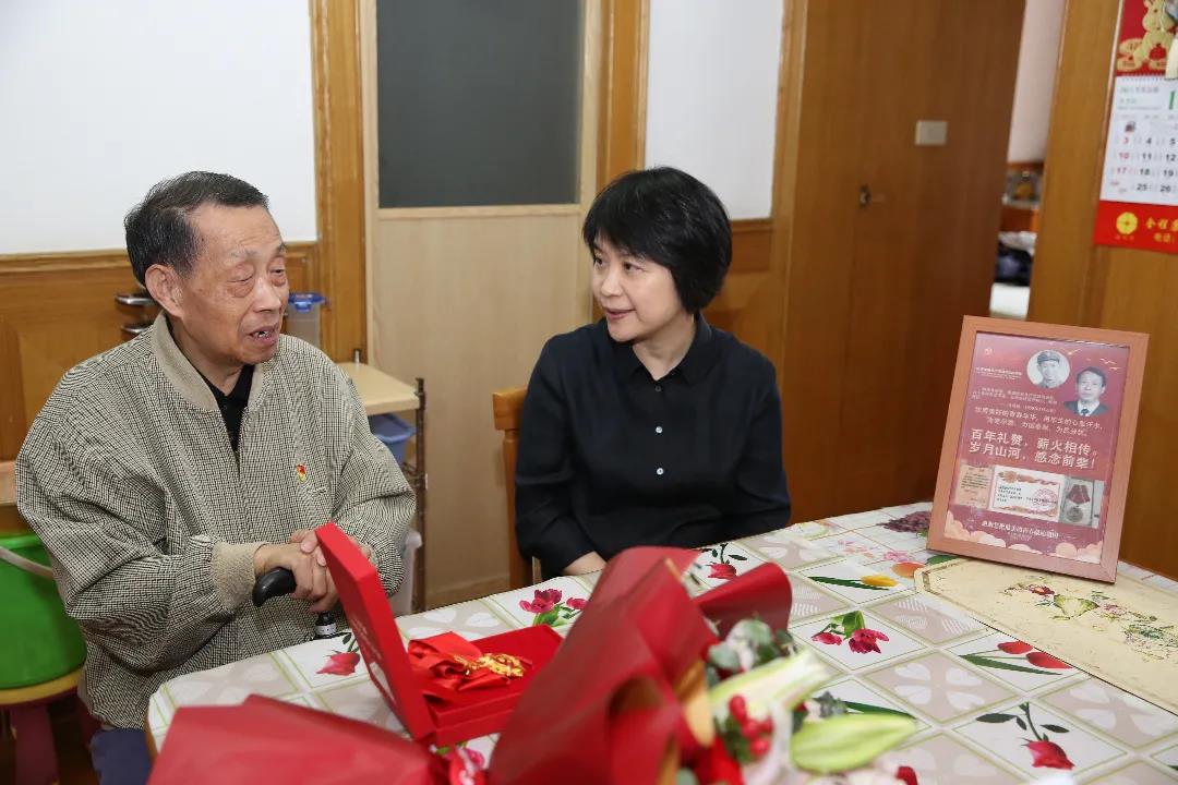 區人大常委會黨組書記朱勤皓來到94歲的徐東旲老人家中,向老人送上慰問品和節日祝福。徐東旲老人是一名有著50多年黨齡的老黨員,曾任上海市郵電管理局黨委書記,今年還獲得了“光榮在黨50年”紀念章。交談中,朱勤皓詳細了解老人的生活情況和身體健康情況,叮囑街道、部門要多關心老人的生活需求,讓老人們度過幸?鞓返耐砟晟。同時,他也希望老人保重身體,繼續保持樂觀向上的精神面貌,發揮正能量,提高晚年生活質量。