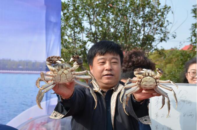 10月,蟹正肥。傍晚時刻,蟹群成片成片爬上岸,隨手拿起一只,足有巴掌大。在上海寶山羅涇鎮的海星村,千畝水產養殖基地迎來豐收!皩毶胶L江蟹特點是個大腿長,殼硬,蟹王9兩、蟹后8兩!绷_涇鎮的相關負責人告訴記者,這里的長江蟹每年銷售額能達到1600萬元,“全力做強‘一對蟹’”。