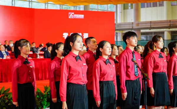 “我們將不懼風雨、勇挑重擔,以實現中華民族偉大復興為己任,讓奮斗的青春在磨礪中綻放絢麗之花!”大會現場,70名東華學子身著“錦緞紅”,帶來慷慨激昂、青春洋溢的獻詞,他們用真誠質樸的語言向母校深情告白,抒發“東華有我,請母校放心,未來有我,請祖國放心,強國有我,請黨放心”的錚錚誓言。