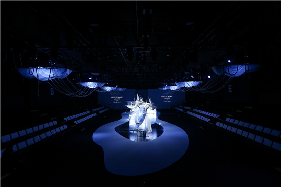 10月16日晚,位于新天地太平湖畔的上海時裝周紅庭秀場化身為一片藍色的海洋,桅桿聳立,揚帆起航,T臺形如海浪,模特們穿梭折返,仿佛行駛在熙熙攘攘的古老海絲航線上。為期九天的2022 春夏上海時裝周也就此落下帷幕。