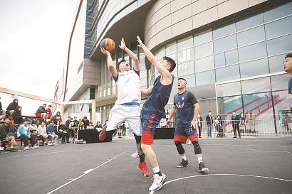 市民在籃球節上展開“對抗”。 本報記者 海沙爾 攝