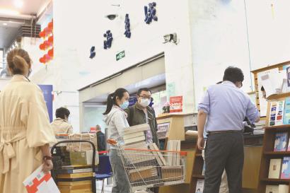 上海書城最大折扣回饋讀者,吸引市民前來選購圖書。 本報記者 蔣迪雯 攝