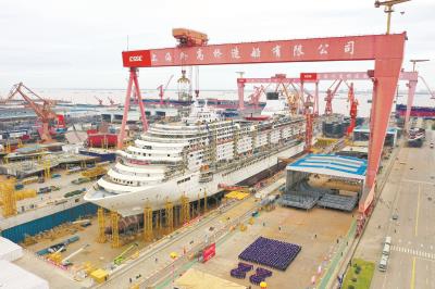 中國首制大型郵輪實現全船貫通 預計2023年交付