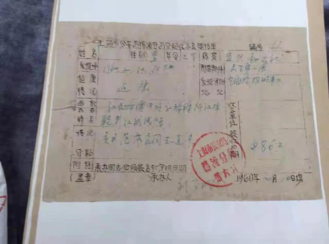 兩個月前,虞老先生看到了警方張貼的“團圓行動”海報,于是興奮地趕到楊浦公安分局刑偵支隊求助,他告訴民警自己是棄嬰,想找到家人,還拿出了一張六十多年前楊浦公安分局出具的棄嬰收容介紹單。