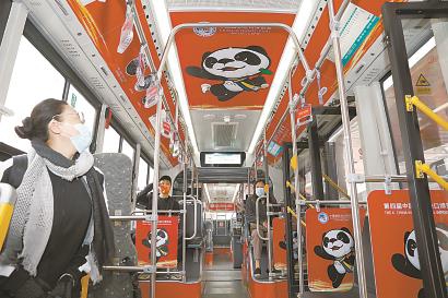 近日,上海公交品牌線路71路“進博號”上新。3輛中運量公交車作為進博會主題專車正式上線運營,車內憨態可掬的“進寶”笑迎來客。 本報記者 李茂君 攝
