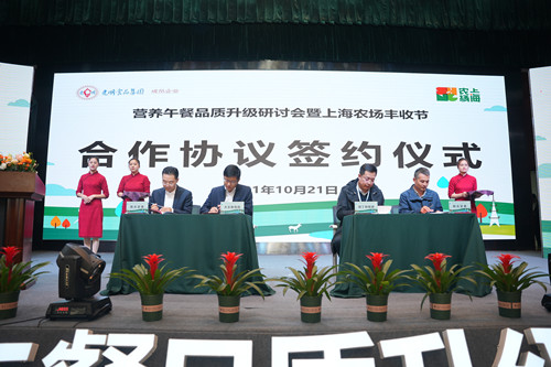 當日,上海農場與大豐區教育局、帕丁頓科教集團、大豐區公安局、上海五分之一餐飲集團、上海海博物流(集團)有限公司、大豐英茂糖業有限公司等單位就營養午餐產業進行了合作簽約。