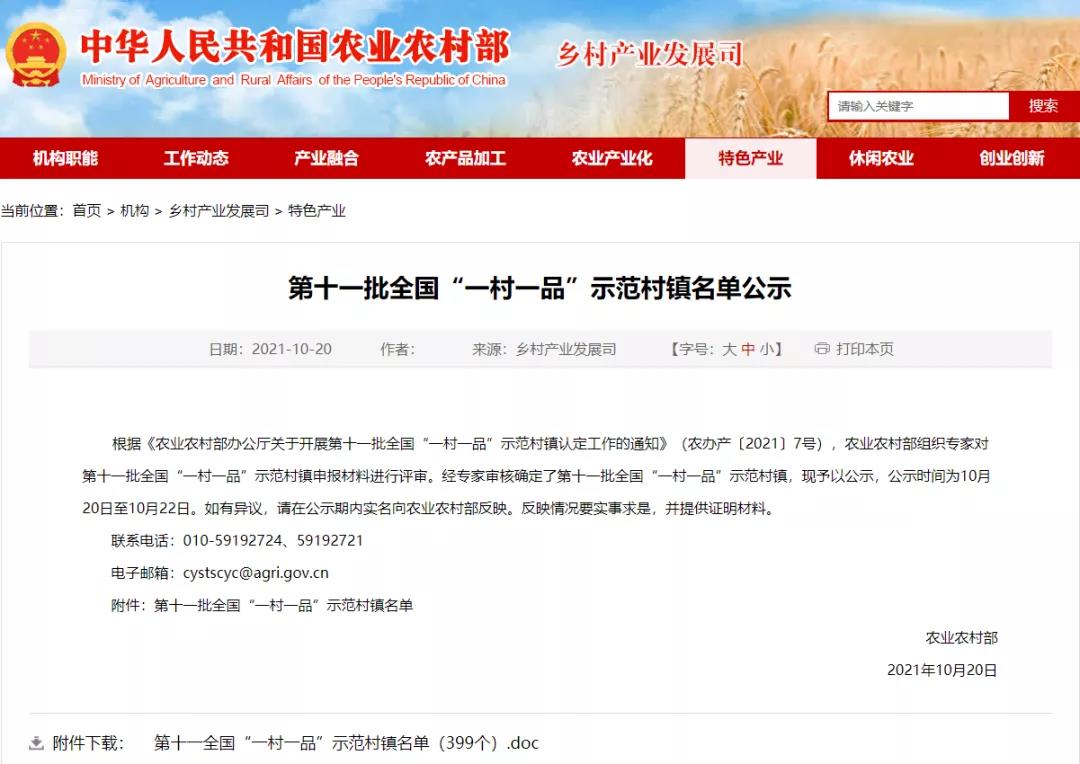 根據《農業農村部辦公廳關于開展第十一批全國“一村一品”示范村鎮認定工作的通知》(農辦產〔2021〕7號),農業農村部組織專家對第十一批全國“一村一品”示范村鎮申報材料進行評審。日前,經專家審核確定了第十一批全國“一村一品”示范村鎮,現予以公示,公示時間為10月20日至10月22日。