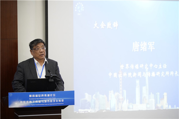 世界傳媒研究中心主任、中國社科院新聞與傳播研究所所長唐緒軍致辭