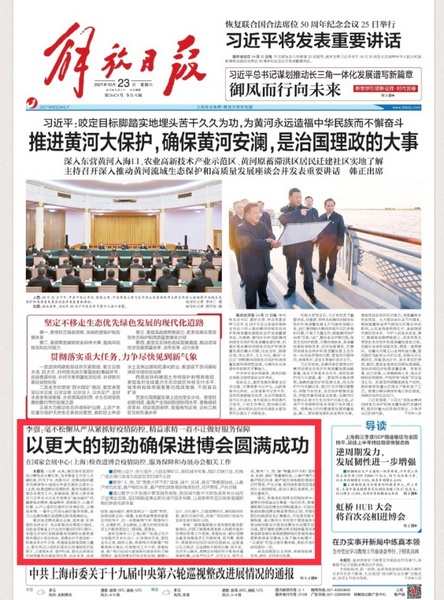 為舉辦一屆成功的進博會,在疫情防控難度大的背景下,上海正全力以赴,精準施策。各項籌備工作進入關鍵階段之際,22日,上海市委書記、進博會城市服務保障領導小組組長李強到國家會展中心(上海)檢查疫情防控、服務保障和辦展辦會相關工作。他在詳細聽取城市服務保障和辦展參展相關情況介紹后指出,進博會對于推進新一輪高水平對外開放、構建新發展格局意義重大。要在持之以恒抓好常態化疫情防控的前提下,以更高水平、更嚴標準、更優品質落實好城市服務保障各項任務,辦出水平、辦出成效、越辦越好。