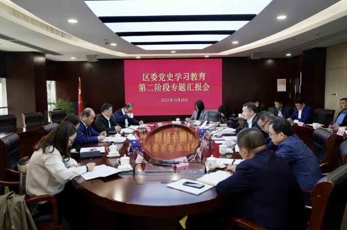 10月26日上午,區委黨史學習教育第二階段專題匯報會召開,市委黨史學習教育第一巡回指導組組長鈕曉鳴,區委書記、區委黨史學習教育領導小組組長陳杰,區領導胡寶國出席會議。