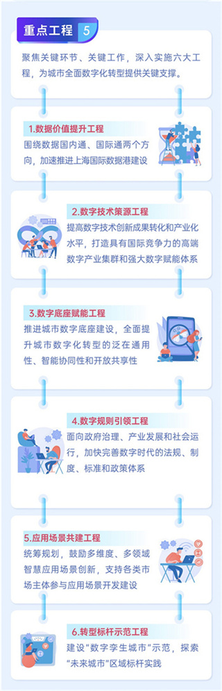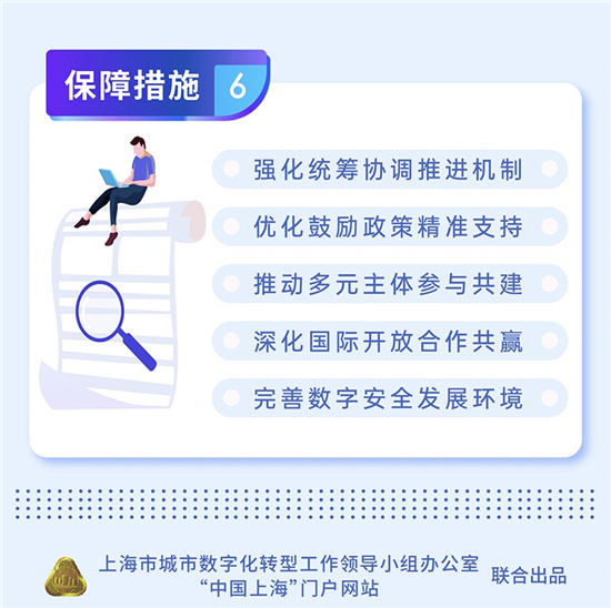 四是完善保障體系,構建數字化轉型新生態。完善數字時代的法規、制度、標準和政策體系,研究推進《上海市數據條例》《上海市城市數字化轉型促進條例》綜合性立法和若干專項立法。加強經濟數字化轉型的制度供給,優化市場準入制度,探索新型監管機制。完善生活數字化轉型的規則規范,加強數字信用體系建設,建立數字社會權益保護機制。同時,強化統籌協調推進機制,優化鼓勵政策精準扶持,推動多元主體參與共建,深化國際開放合作共贏,完善數字安全發展環境,為城市數字化轉型提供全方位保障。