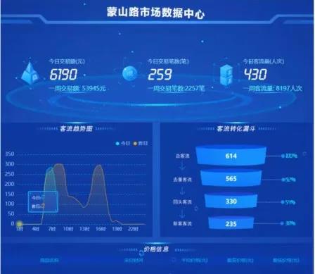 智慧菜場的核心管理系統由阿里本地生活負責建設,通過其旗下的客如云系統,可以高度集成數字化硬件設施,收集交易數據、客流數據、水電數據,并進行分析,形成圖表。管理系統同時具備電子臺賬登記,農藥檢測數據登記,價格采集、行業資質資格動態管理等功能,從而實現智慧采集、智慧交易、智慧管理、智慧服務。后續市場將開通線上業務,市場的服務功能將更加完善。