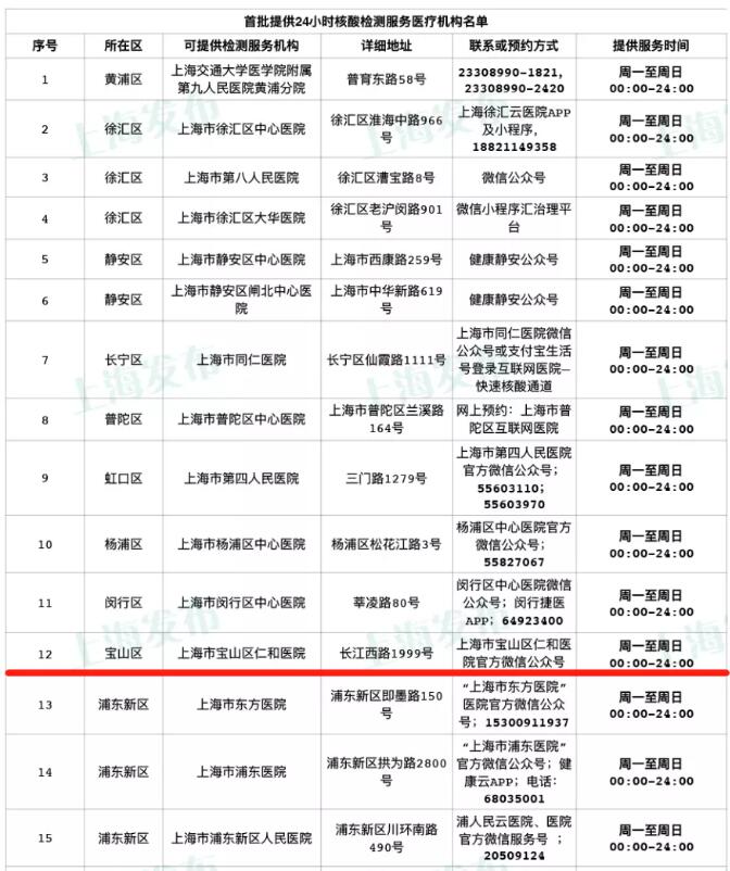 今起,上海市推出首批24小時核酸檢測服務機構,寶山有1家