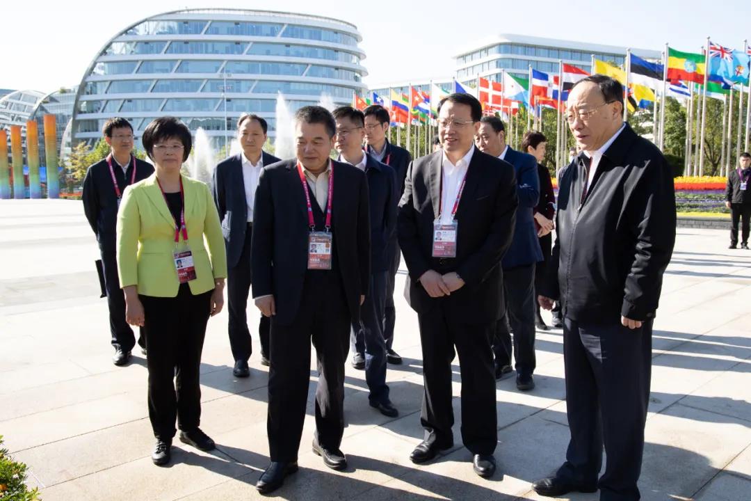 盛會開幕在即,氛圍日漸濃厚。通往國家會展中心(上海)的主干道兩旁,一路繁花相伴,立體綠化成景。龔正一行一路察看市容環境整治提升和核心區綠化布置情況。國家會展中心(上海)南廣場上,花海繽紛,彩旗招展,憨態可掬的進寶笑迎四方賓客。