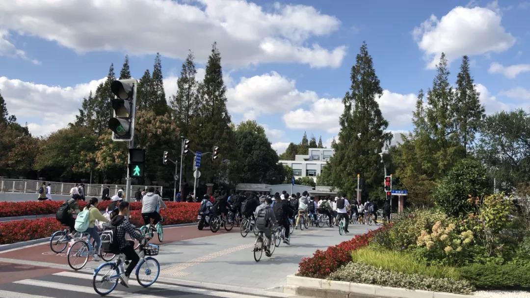 邯鄲路是復旦大學南北校區中間的一條城市主干道。由于邯鄲路的主線是中環快速路,剩余地面道路因寬度有限,以往只規劃了機動車道和人行道,禁止非機動車通行。然而,復旦大學校園面積大,同學們出行經常選擇騎車。校門口路段“禁非”,給大家造成很大困擾。