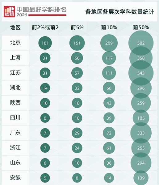 2021軟科中國最好學科排名發布 上海358個學科上榜穩居全國前三甲