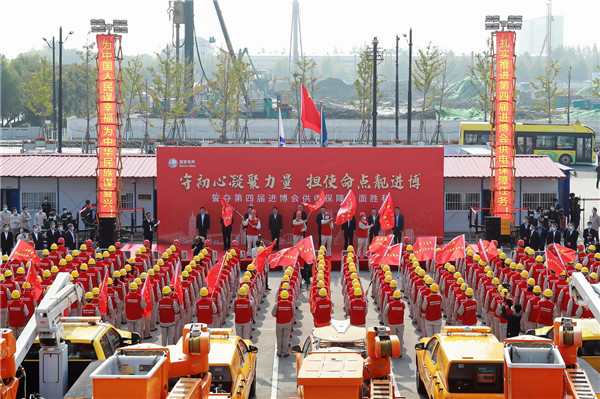 “保電有我、有我必勝!”11月1日上午,在毗鄰國家會展中心的進博會綜合服務保障基地,國網上海市電力公司舉行第四屆進博會供電保障誓師大會。200多名保電人員組成的方陣齊聲呼喊出令人振奮的口號,宣告上海電網正式投入進博保電實戰。