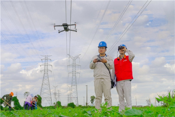國網上海電力輸電運維人員運用無人機對重要輸電通道開展保電特巡