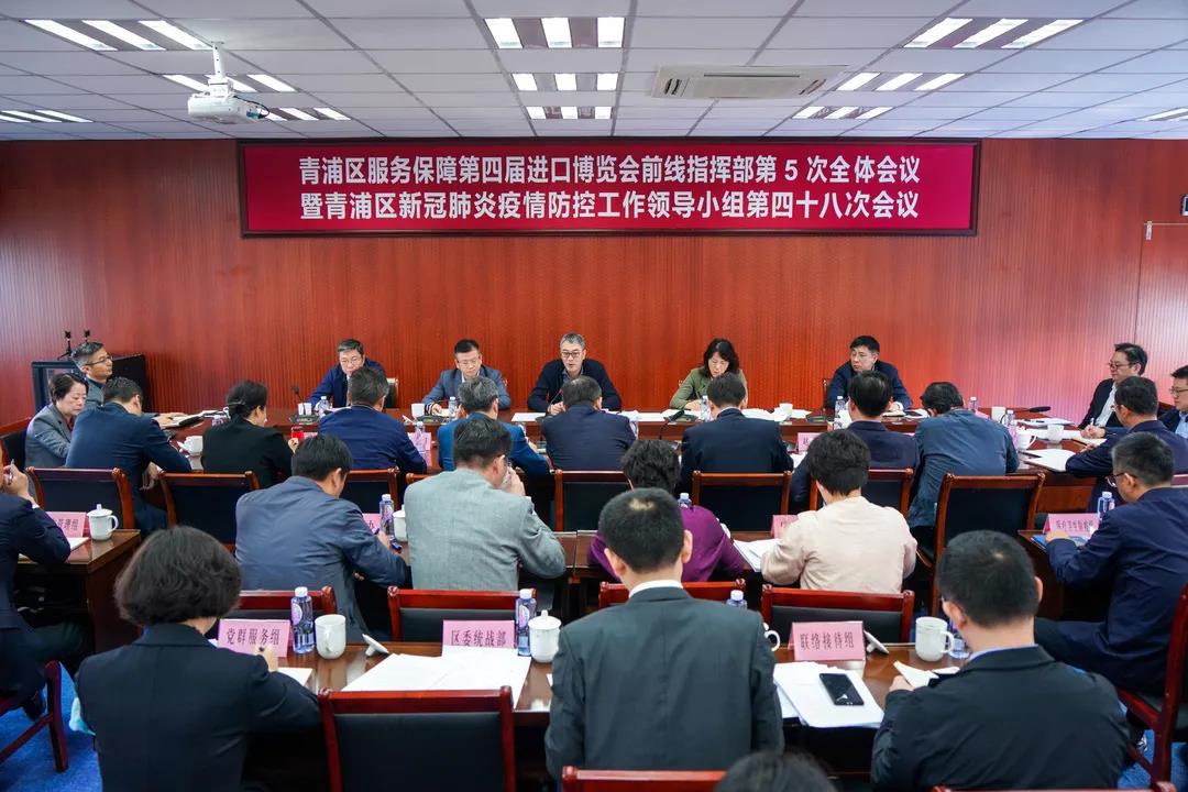 11月1日上午,青浦區服務保障第四屆進口博覽會前線指揮部第5次全體會議暨青浦區新冠肺炎疫情防控工作領導小組第四十八次會議召開,標志著服務保障進博會工作進入實戰攻堅階段。區委書記徐建出席并講話,區委副書記、代理區長楊小菁主持會議,區委副書記張權權,區領導王凌宇、金俊峰、顧駿、陳建國、李方明、何強、趙宏林、倪向軍、姚少杰、張彥、陳匯青、肖輝、顧嘯流、饒斐文、徐英出席。