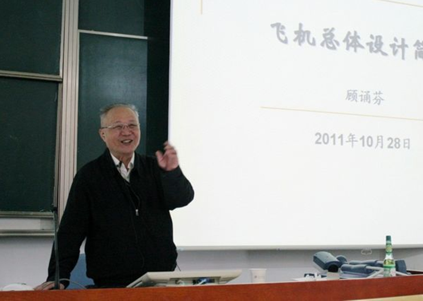 2011年10月28日,顧誦芬為航空航天學院學生做學術報告