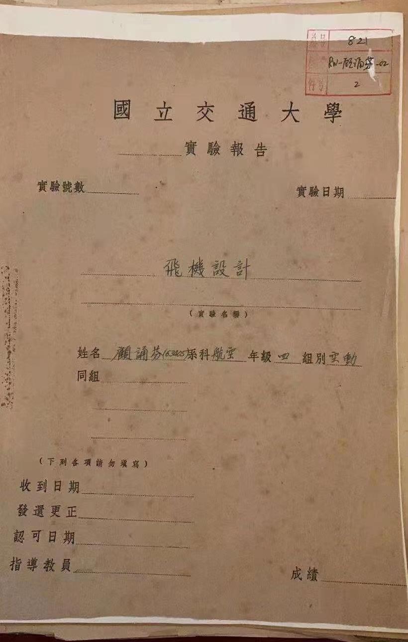 1950年至1951年,顧誦芬在交大就讀期間所作《飛機設計》的實驗報告