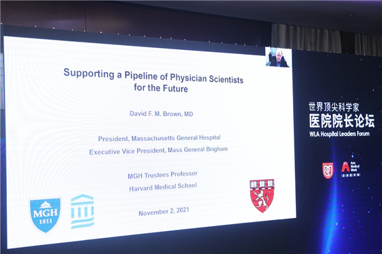 哈佛大學醫學院附屬麻省總醫院(MGH)院長大衛·布朗詳細介紹了對于年輕醫生和醫學生的培養思路和成長支持。他指出,對于醫學生而言,早期的互動尤為重要,在臨床培訓之外,要讓他們及早接觸科研;同時,導師的角色對于年輕人的成長非常關鍵,可以為他們提供扎實的基礎,職業規劃的建議以及人生成長的支持。