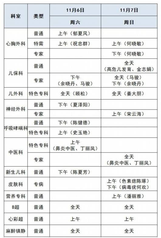 上海兒童醫學中心說,為更好地滿足患兒就醫需求,11月6日(周六)、11月7日(周日)在原有門診安排的基礎上,臨時增開心胸外科、兒?、兒外科、神經外科等門診。原門診安排不變,具體開診信息以當日開診為準。詳見↓