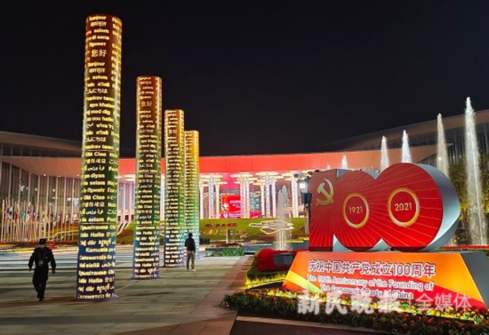 圖說:國家會展中心南廣場正式亮燈 新民晚報記者周馨 攝