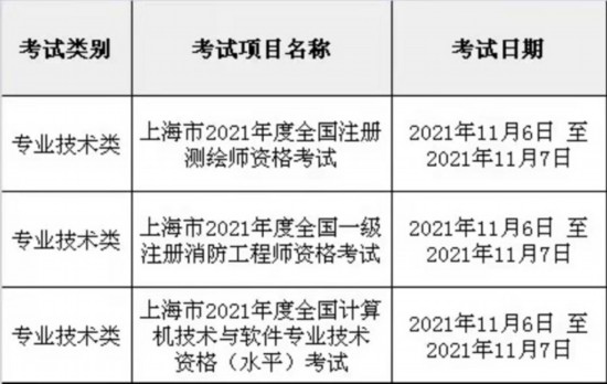 新民晚報訊(記者 魯哲)11月6日 至 11月7日,將舉行全國注冊測繪師資格考試、全國一級注冊消防工程師資格考試、全國計算機技術與軟件專業技術資格(水平)考試三大考試。為了確?忌軌蝽樌麉⒓涌荚,上海市人力資源和社會保障局近日特地發布提醒。